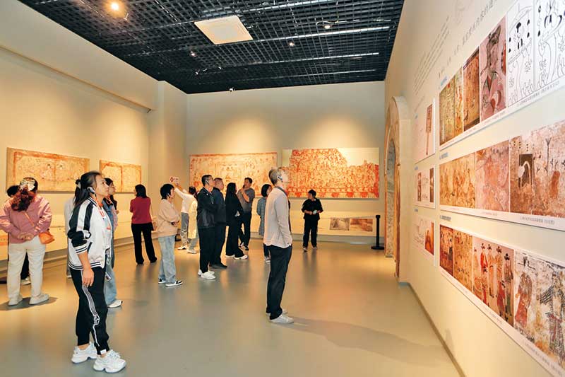 • 市民在山西晉之源壁畫藝術(shù)博物館參觀